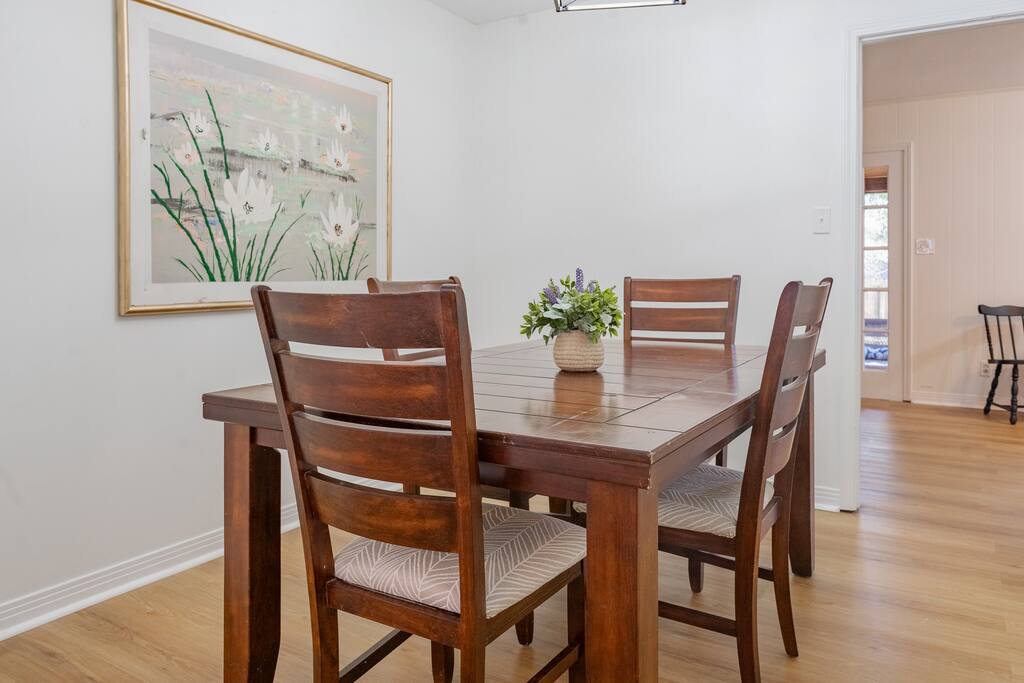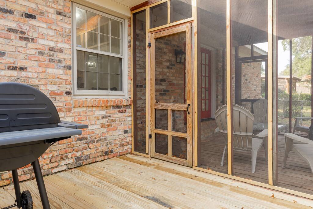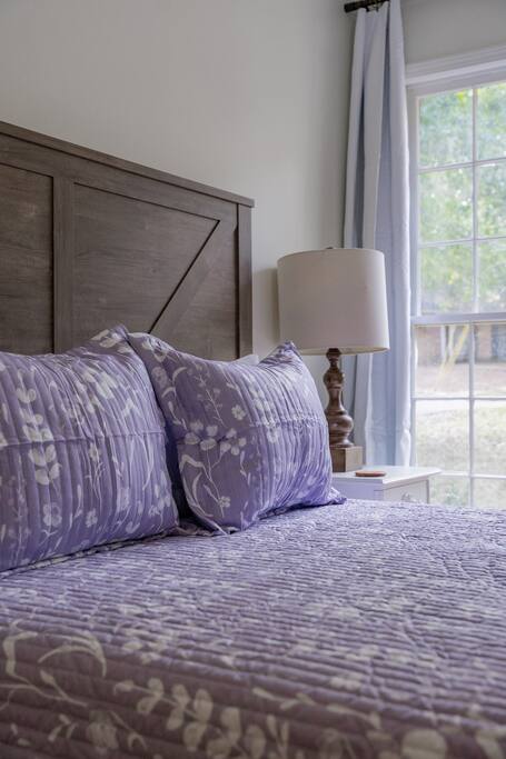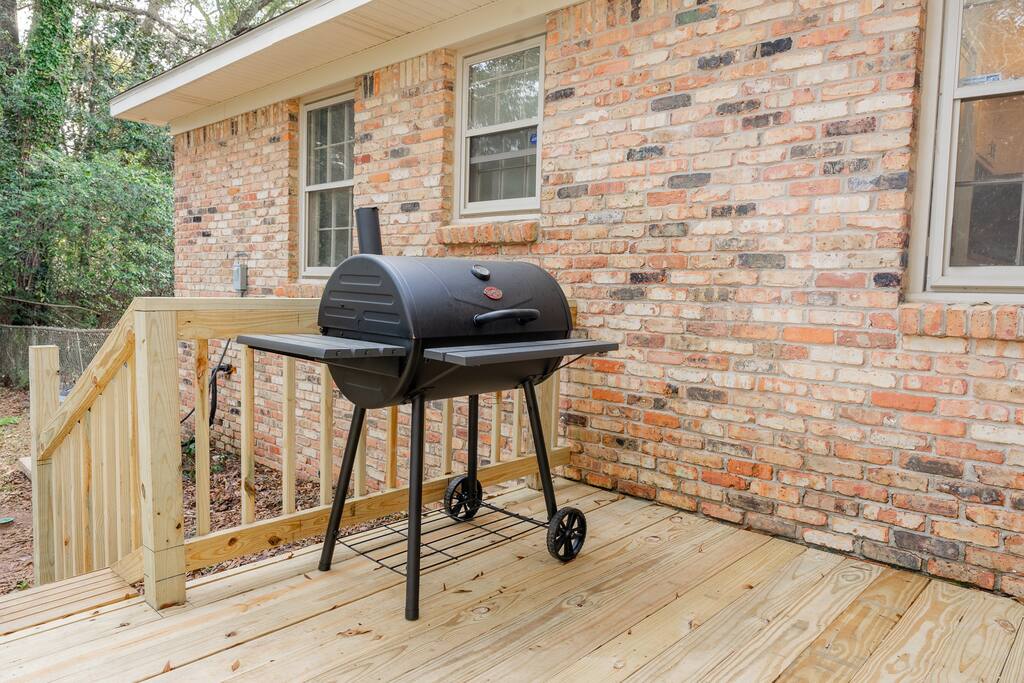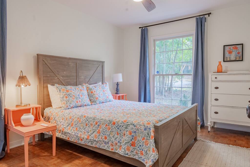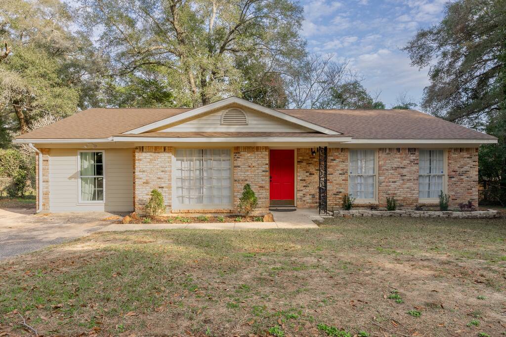 Located in a quaint neighborhood across from The University of South Alabama you can enjoy a nice stroll around the neighborhood or a walk to campus. Bring the whole family and enjoy your stay at our spacious 4 bedroom, 2.5 bath home, equipped with all the essential amenities and a dedicated "kid's room". The kid's room is separate from the other bedrooms and equipped with 2 queen beds, a half bath, TV, bean bag chairs, and books and games to keep the fun going. Host family game night with our ping pong table, puzzles, cards, and other games, or watch a movie on our large-screen TV in the living room. Prepare a meal in our well-equipped kitchen or use our charcoal BBQ grill on the deck. The master bedroom has a king bed and en suite bathroom with tub/shower combo and the 2 additional guest rooms each have a queen bed and easy access to the hallway bathroom equipped with a tub/shower combo as well. Each bedroom has a dresser and a closet for clothing storage during your stay. There is also a washer/dryer in the house so you can do your laundry conveniently. We always provide a starter pack of these essential items: a couple rolls of toilet paper, 1 roll of paper towels, a couple trash bags, dish soap, hand soap, laundry detergent, coffee pods, cream and sugar, hotel-sized shampoo, conditioner, and body wash and/or soap.
