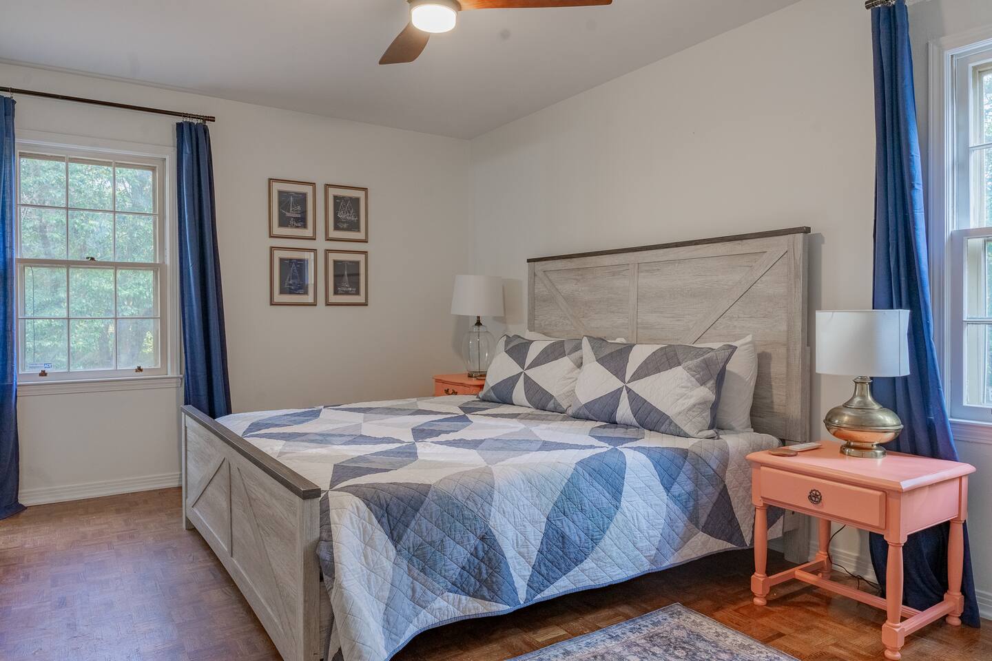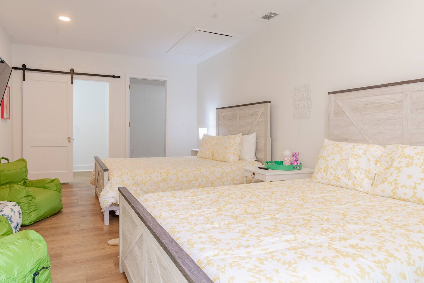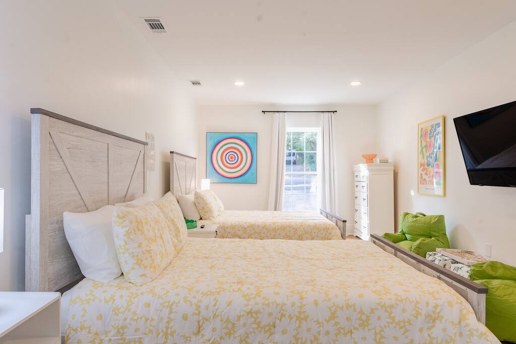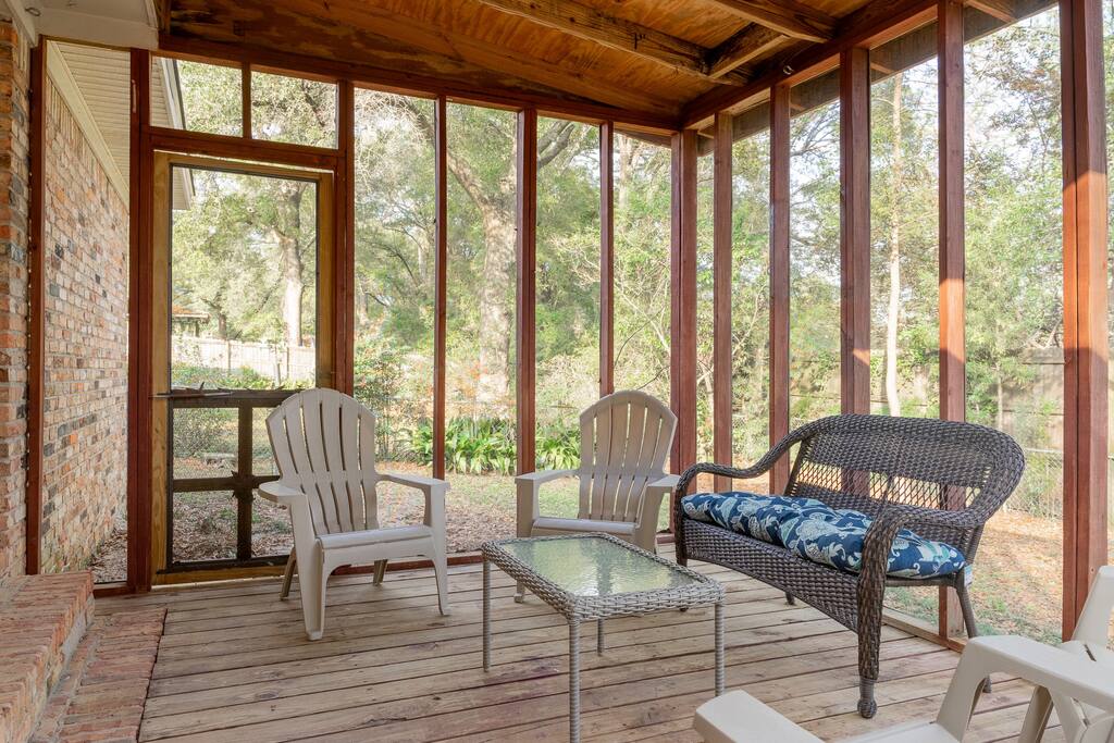 Located in a quaint neighborhood across from The University of South Alabama you can enjoy a nice stroll around the neighborhood or a walk to campus. Bring the whole family and enjoy your stay at our spacious 4 bedroom, 2.5 bath home, equipped with all the essential amenities and a dedicated "kid's room". The kid's room is separate from the other bedrooms and equipped with 2 queen beds, a half bath, TV, bean bag chairs, and books and games to keep the fun going. Host family game night with our ping pong table, puzzles, cards, and other games, or watch a movie on our large-screen TV in the living room. Prepare a meal in our well-equipped kitchen or use our charcoal BBQ grill on the deck. The master bedroom has a king bed and en suite bathroom with tub/shower combo and the 2 additional guest rooms each have a queen bed and easy access to the hallway bathroom equipped with a tub/shower combo as well. Each bedroom has a dresser and a closet for clothing storage during your stay. There is also a washer/dryer in the house so you can do your laundry conveniently. We always provide a starter pack of these essential items: a couple rolls of toilet paper, 1 roll of paper towels, a couple trash bags, dish soap, hand soap, laundry detergent, coffee pods, cream and sugar, hotel-sized shampoo, conditioner, and body wash and/or soap.