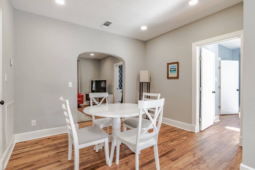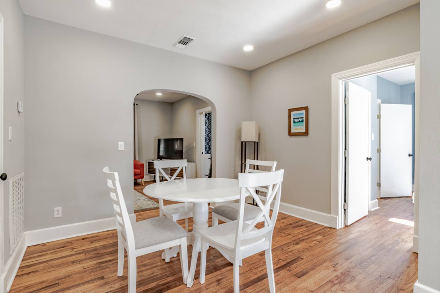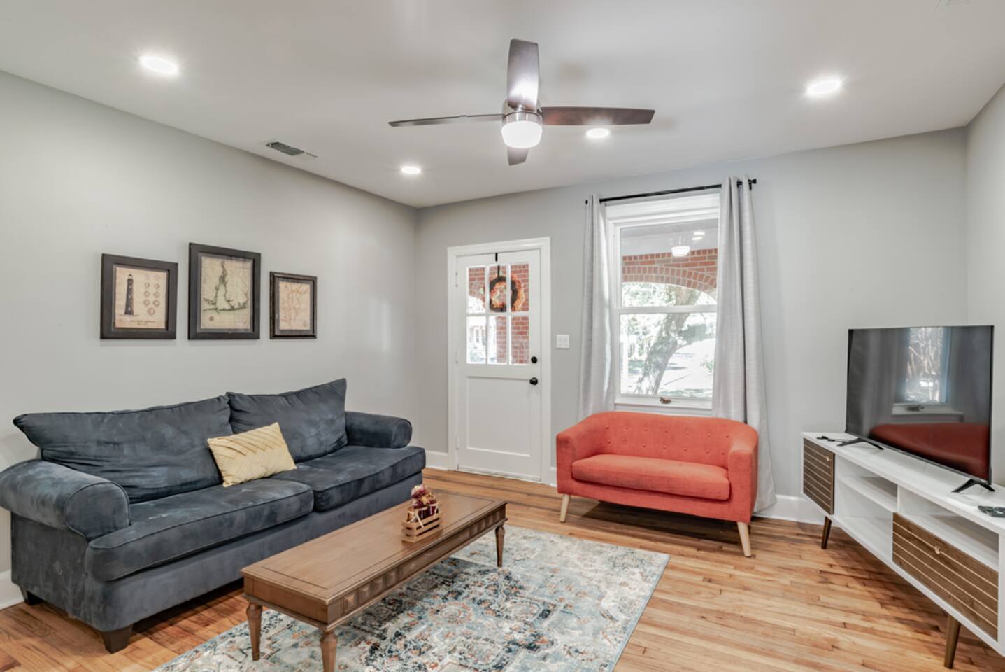 Located on a beautiful street in a sought-after midtown neighborhood, you'll enjoy the beautiful historic homes and old oak trees lining the streets. Start your morning with coffee provided while you watch neighbors walk their dogs & push strollers along the street. Enjoy cooking in our kitchen with all the necessary kitchen essentials. Watch your favorite shows on the large screen TV equipped with an Amazon Firestick or do work on your computer with the fast AT&T fiber internet. Enjoy pretty weather on the spacious back deck. At the end of the day unwind with a bath in the tub/shower combo. For your sleeping comforts there are queen beds in both bedrooms that are equipped with closets and dressers for your clothing items. There is also a washer/dryer in the duplex so you can do your laundry conveniently. We always provide a small starter pack of these essential items: a couple rolls of toilet paper, 1 roll paper towels, a couple trash bags, dish soap, hand soap, laundry detergent, coffee pods, hotel-sized shampoo, conditioner, and body wash and/or soap. PLEASE NOTE: This property is a duplex and we want all guests to have a comfortable and positive experience. Therefore out of respect for other occupants please be conscious of volume levels and quiet hours. Absolutely no loud music, loud TV noise, or parties allowed.