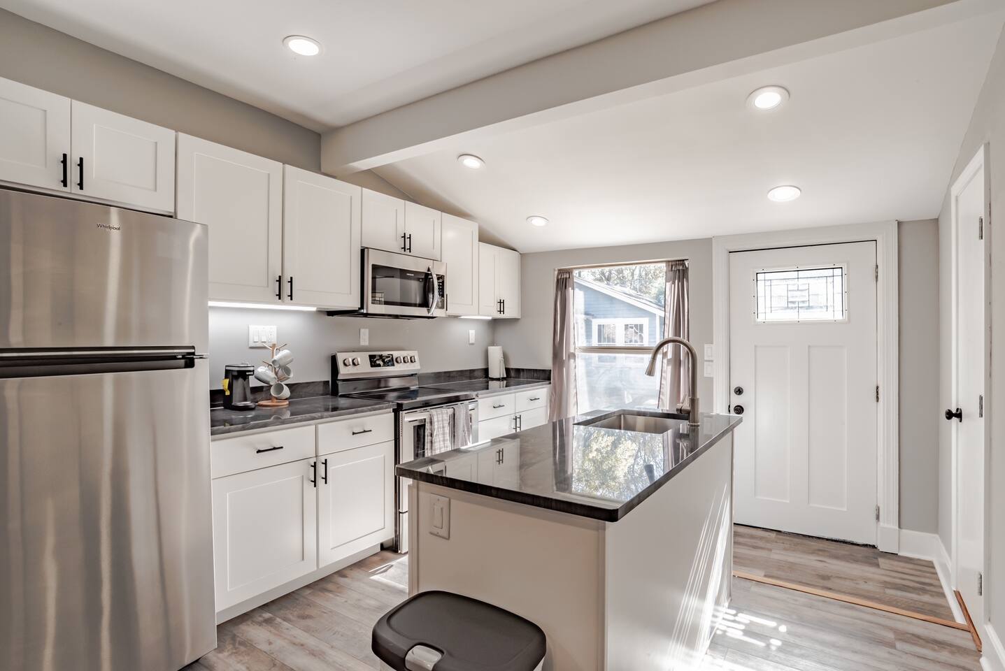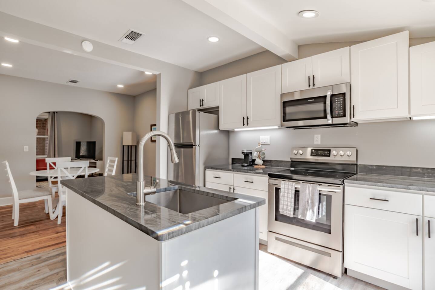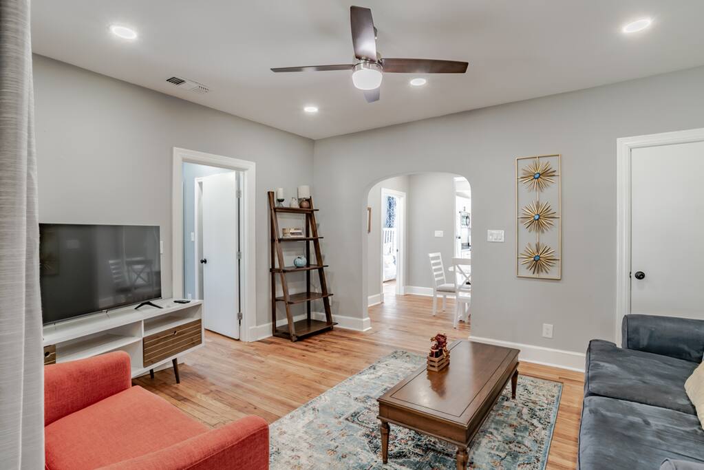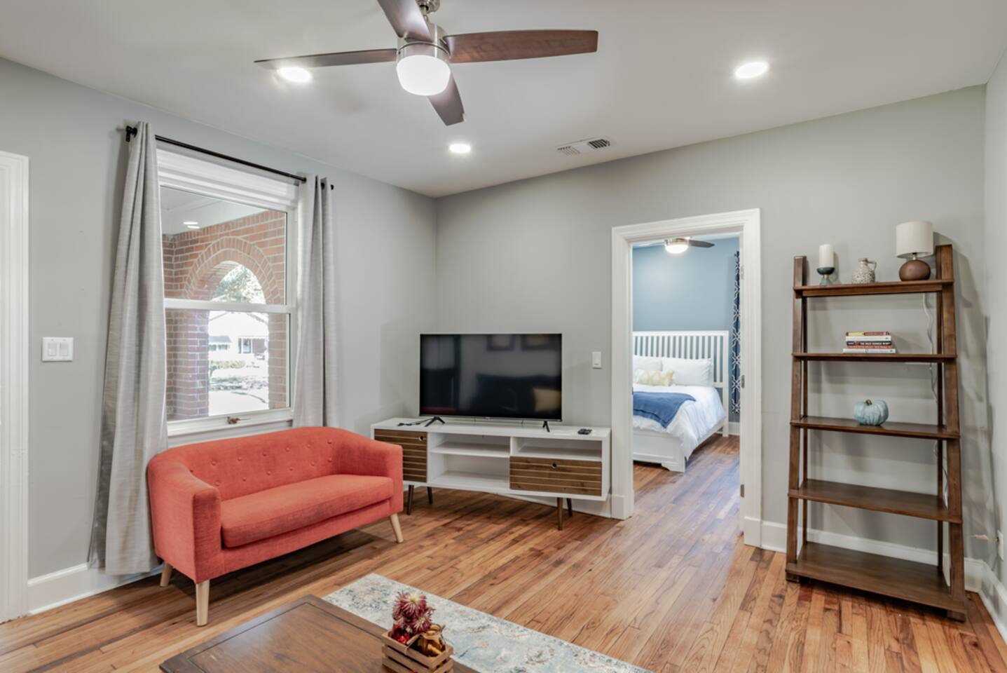 Located on a beautiful street in a sought-after midtown neighborhood, you'll enjoy the beautiful historic homes and old oak trees lining the streets. Start your morning with coffee provided while you watch neighbors walk their dogs & push strollers along the street. Enjoy cooking in our kitchen with all the necessary kitchen essentials. Watch your favorite shows on the large screen TV equipped with an Amazon Firestick or do work on your computer with the fast AT&T fiber internet. Enjoy pretty weather on the spacious back deck. At the end of the day unwind with a bath in the tub/shower combo. For your sleeping comforts there are queen beds in both bedrooms that are equipped with closets and dressers for your clothing items. There is also a washer/dryer in the duplex so you can do your laundry conveniently. We always provide a small starter pack of these essential items: a couple rolls of toilet paper, 1 roll paper towels, a couple trash bags, dish soap, hand soap, laundry detergent, coffee pods, hotel-sized shampoo, conditioner, and body wash and/or soap. PLEASE NOTE: This property is a duplex and we want all guests to have a comfortable and positive experience. Therefore out of respect for other occupants please be conscious of volume levels and quiet hours. Absolutely no loud music, loud TV noise, or parties allowed.
