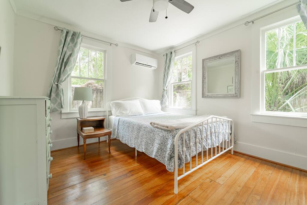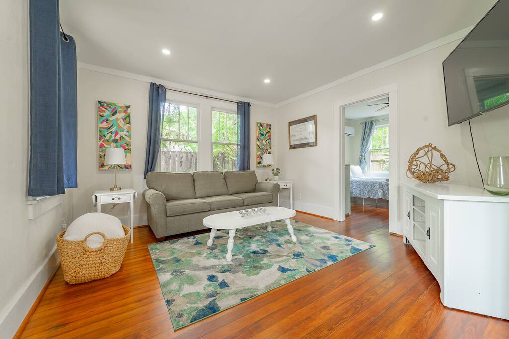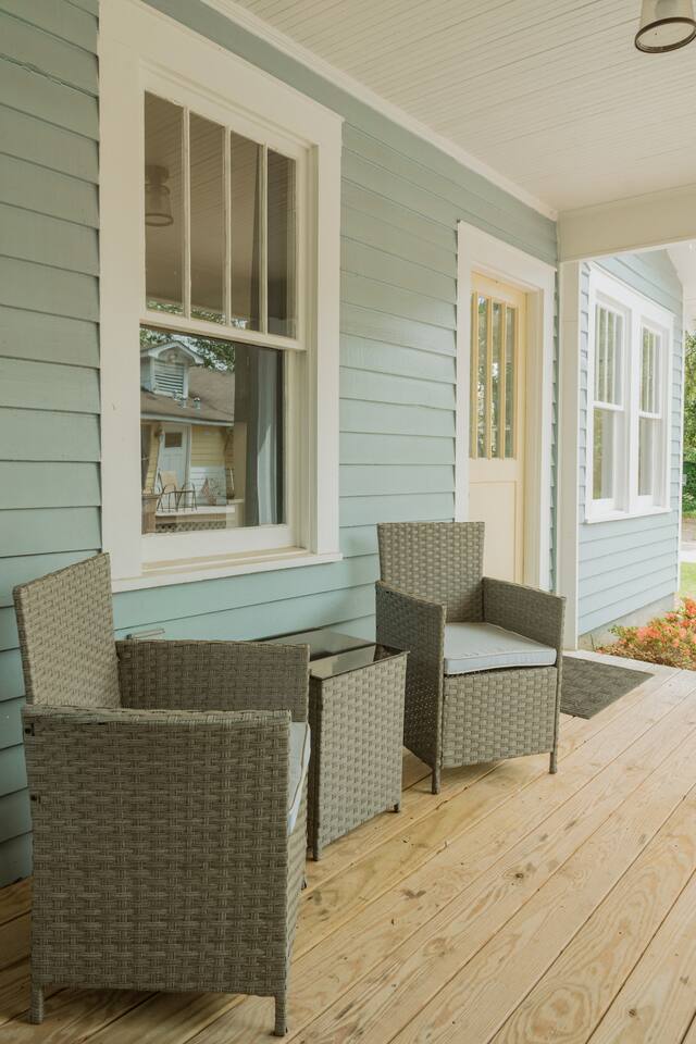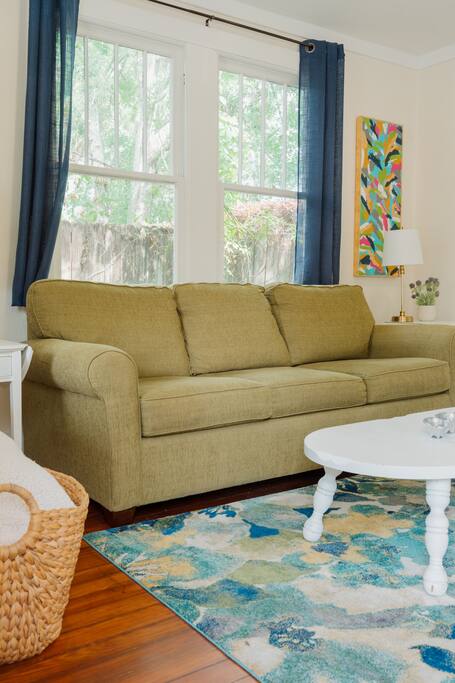 Located on a beautiful street in a sought-after midtown neighborhood, you'll enjoy the beautiful historic homes and old oak trees lining the streets. Start your morning with coffee from the Keurig while you watch neighbors walk their dogs & push strollers along the street. Enjoy cooking in our kitchen with all the necessary kitchen essentials. Watch your favorite shows on the large screen TV equipped with an Amazon Firestick or do work on your computer with the fast AT&T fiber internet. Enjoy your shower in our newly remodeled bathroom equipped with walk-in shower and rainfall showerhead. For your sleeping comforts there is a queen bed in the main bedroom and a queen sofabed in the living room for those little ones or that extra guest. There is also a washer/dryer in the house so you can do your laundry conveniently. We always provide a small starter pack of these essential items: a couple rolls of toilet paper, 1 roll paper towels, a couple trash bags, dish soap, hand soap, laundry detergent, coffee pods, hotel-sized shampoo, conditioner, and body wash and/or soap.