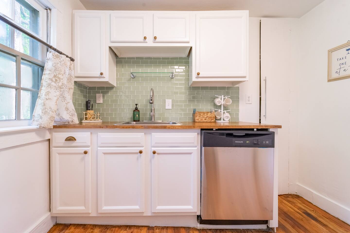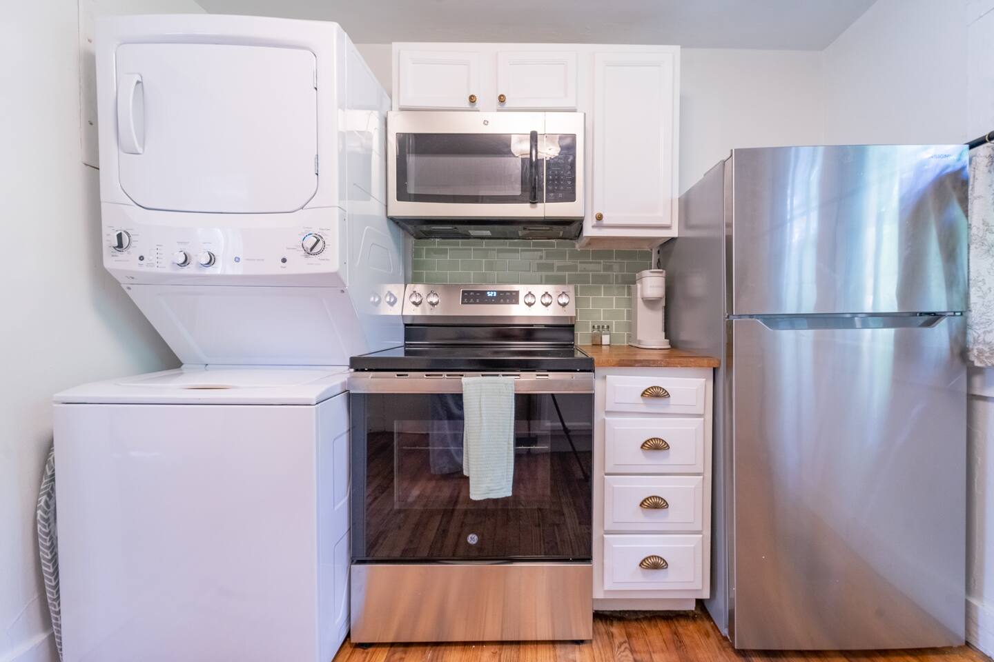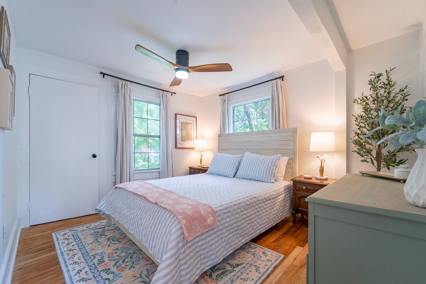 Guest access is through the front door. For your convenience, self check-in is available via a lockbox located on the handrail at the top of the stairs leading to the unit. Please note that you’ll need to climb the exterior staircase to access the apartment.