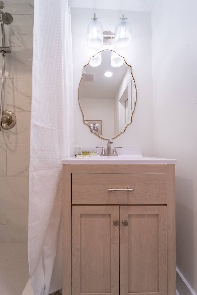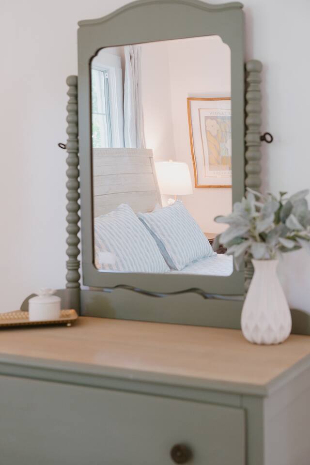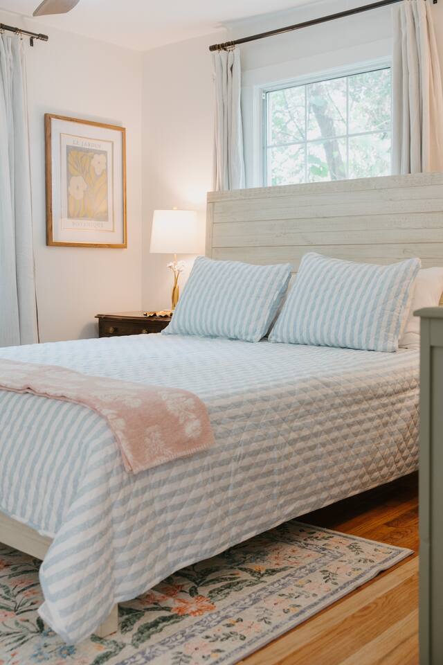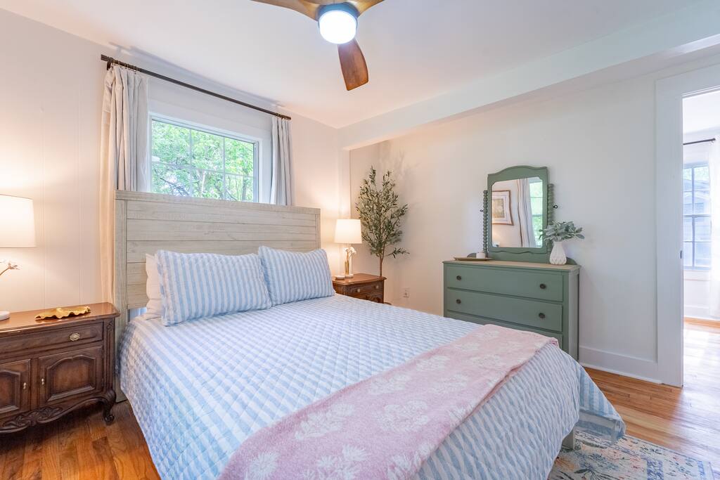 Located on a beautiful street in a sought-after midtown neighborhood, you'll enjoy historic homes and old oak trees lining the streets. This upstairs garage apartment is privately situated behind the main house with dedicated off-street parking. Start your morning with coffee from the Keurig and enjoy cooking in a well-equipped kitchen with all the essentials to prepare a nice meal at home. Stream your favorite shows on the large-screen TV with an Amazon Fire TV, or get work done using fast AT&T fiber internet. The bathroom features a modern walk-in shower with a luxurious rainfall showerhead. For a restful night’s sleep, the bedroom includes a queen bed, room-darkening curtains, a vanity dresser, and a closet for your belongings. A washer and dryer are also available for your convenience. We provide a small starter pack of essentials: toilet paper, paper towels, trash bags, dish soap, hand soap, laundry detergent, coffee pods, and hotel-sized shampoo, conditioner, and body wash or soap. Be sure to check out our guidebook for recommended restaurants and things to do in and around Mobile during your stay.